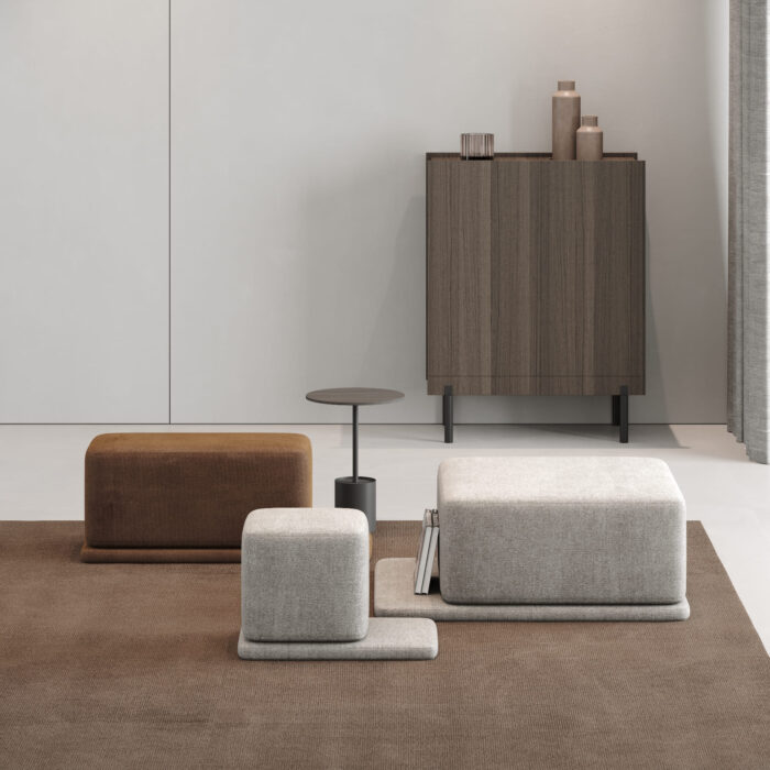 Coast — Pouf rembourré au design fonctionnel et concis. La partie inférieure sert d’étagère pour livres, magazines et objets de décoration.