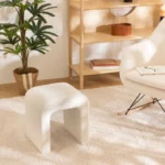 Pouf « Sevi » en bouclette 41x35cm blanc – Atmosphera createur d’interieur – Blanc